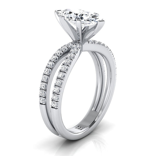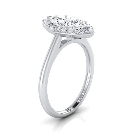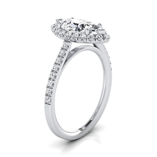 You'll also be able to choose from a wide variety of style and setting options, as our collection includes solitaire, halo, three-stone, and split-shank marquise diamond engagement rings to name a few. So, if you are looking for a simple and timeless design, our solitaire marquise diamond ring provides a classic style that emphasizes the clean lines of the diamond's shape, giving your engagement ring an understated elegance. A three-stone marquise diamond engagement ring, on the other hand, offers a bolder, more dramatic look, with two smaller diamonds flanking a larger marquise diamond for a striking and unique appearance.