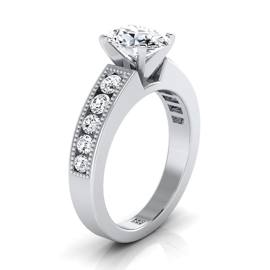 When it comes to metal choices, you have various options to choose from. Yellow gold provides a classic and traditional look, evoking a sense of timeless elegance. White gold offers a cool and contemporary appearance, giving a modern twist to vintage-inspired designs. If you prefer a warm vibe, rose gold is an excellent choice, adding a touch of vintage charm to your ring. But, for those seeking a luxurious and sophisticated look, platinum is highly durable, naturally white, and enhances the brilliance of diamonds.
