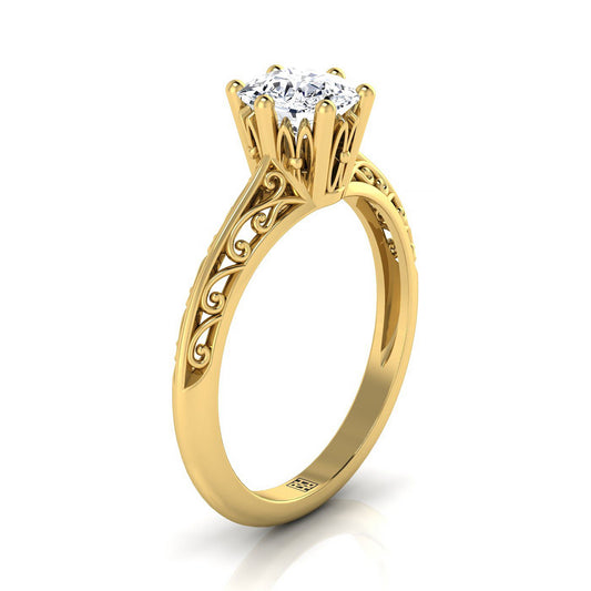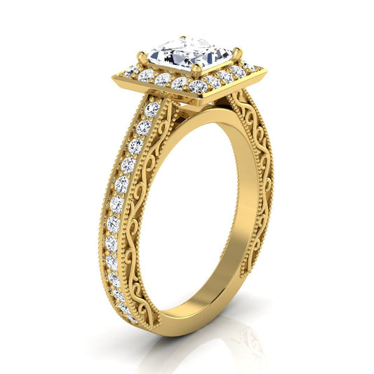 Our vintage-style engagement rings also come in different center stone shapes that can reflect your personal style and preference. The Asscher-cut diamond, with its step-cut facets and distinctive square shape, offers a vintage-inspired look that showcases geometric brilliance and clarity. The emerald-cut diamond also offers a vintage style, with its elegant, elongated lines and step-cut facets, accentuating clarity, this stone offers beautiful light reflections.