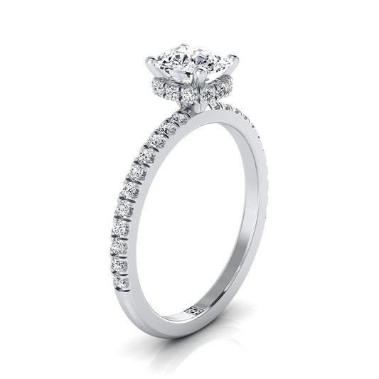 When it comes to selecting the perfect setting for a cushion-cut diamond engagement ring, the possibilities are vast. Many setting styles pair harmoniously with the cushion cut, enhancing its romantic allure and granting it the attention it deserves. Here are some of the most popular settings to pair with the cushion-cut diamond: