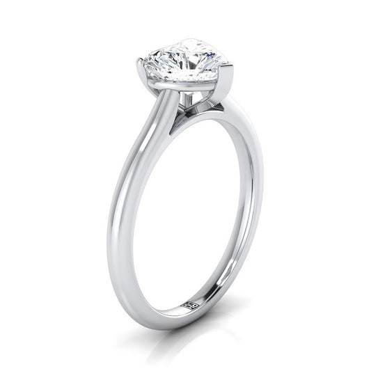However, one of the most popular settings from our selection of heart cut diamonds is the solitaire setting. This choice features the diamond prominently, held in place by a simple and elegant band with minimal metal. The solitaire setting highlights the diamond's unique shape and allows light to pass through the diamond to create maximum brilliance. As heart cut diamonds are known for their singular shape, this minimalistic setting also accentuates the diamond's romantic design.