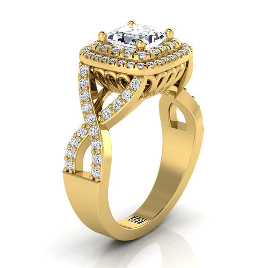 For those seeking to add a touch of glamor and extra sparkle to their engagement ring, a halo setting truly shines with a princess-cut diamond. A circle of smaller diamonds encircling the center stone creates a radiant halo effect, accentuating the stone's brilliance and creating an illusion of a larger center diamond. The contrasting square shape of the princess-cut diamond against the round brilliance of the halo creates a captivating juxtaposition of geometric shapes.