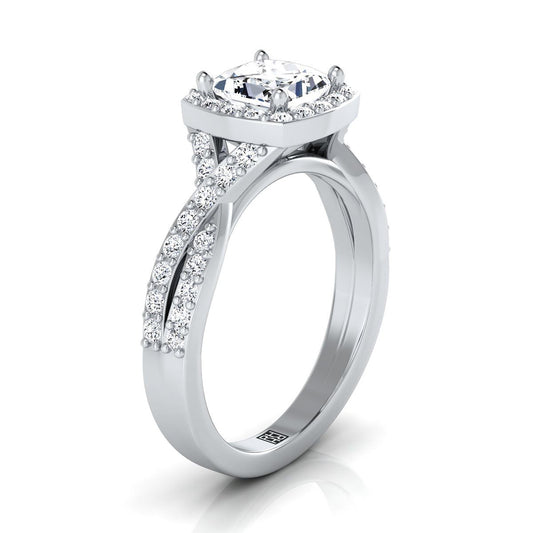 For those seeking to add a touch of glamor and extra sparkle to their engagement ring, a halo setting truly shines with a princess-cut diamond. A circle of smaller diamonds encircling the center stone creates a radiant halo effect, accentuating the stone's brilliance and creating an illusion of a larger center diamond. The contrasting square shape of the princess-cut diamond against the round brilliance of the halo creates a captivating juxtaposition of geometric shapes.