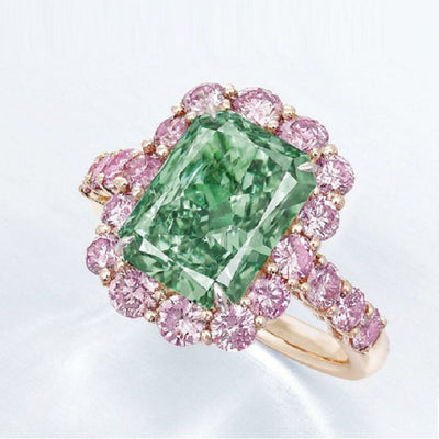The meaning of green diamonds is fertility and vitality. The color of spring, green diamonds symbolize new beginnings.