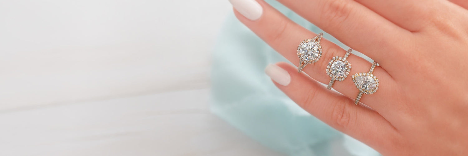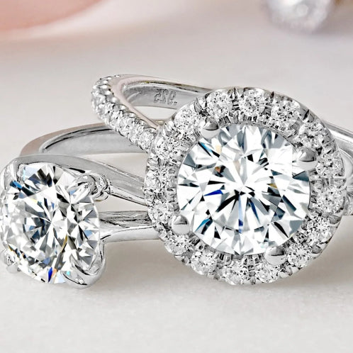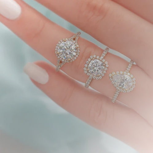 Enhance your center stone with a radiant halo of smaller diamonds. Available in single or double halo designs and a variety of diamond shapes.