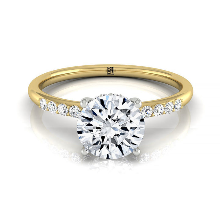 14k Yellow Gold Round Double Hidden Halo Quarter Shank Engagement Ring - 1/25ctw