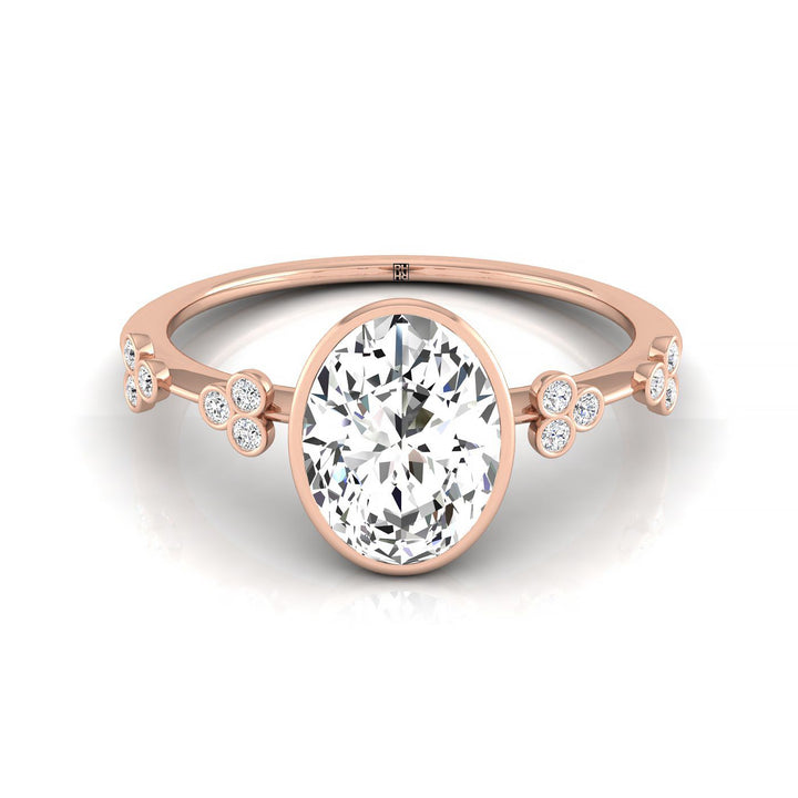 14kr Bezel Set Oval Engagement Ring With 12 Clover Bezel Set Round Diamonds On Shank