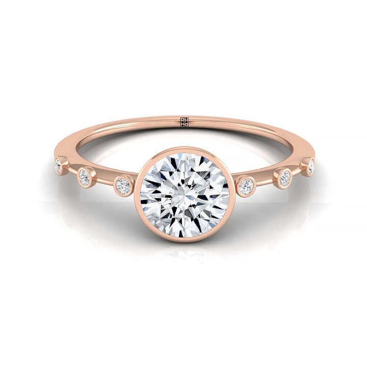 14kr Bezel Set Round Engagement Ring With 6 Bezel Set Round Diamonds On Shank