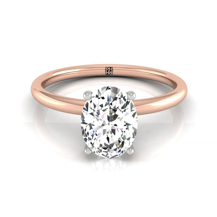 14kr Oval Double Hidden Halo Solitaire Engagement Ring With 22 Prong Set Round Diamonds