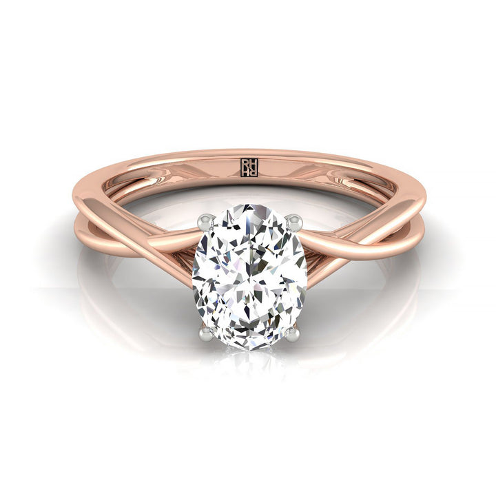 14kr Oval Twisted Shank Hidden Halo Solitaire Engagement Ring With 14 Prong Set Round Diamonds Sz 7.5