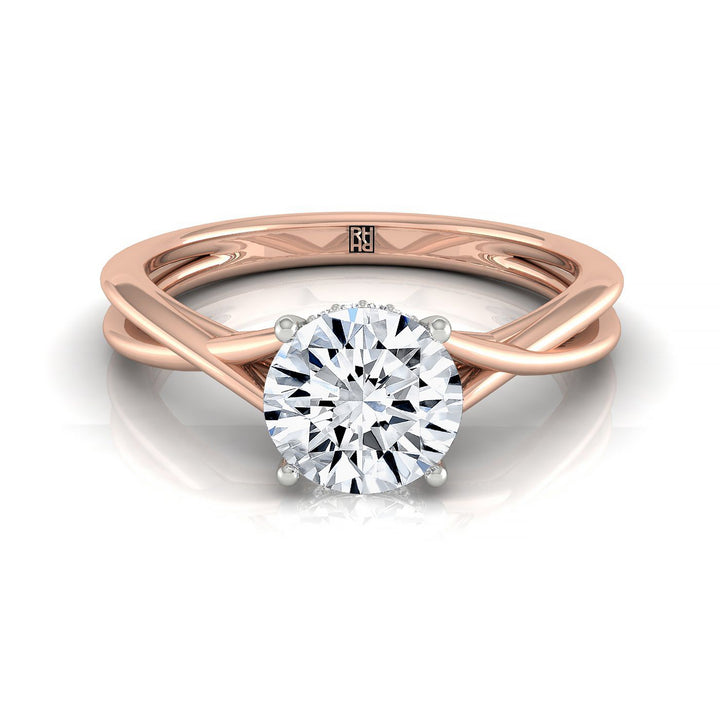 14kr Round Twisted Shank Hidden Halo Solitaire Engagement Ring With 16 Prong Set Round Diamonds