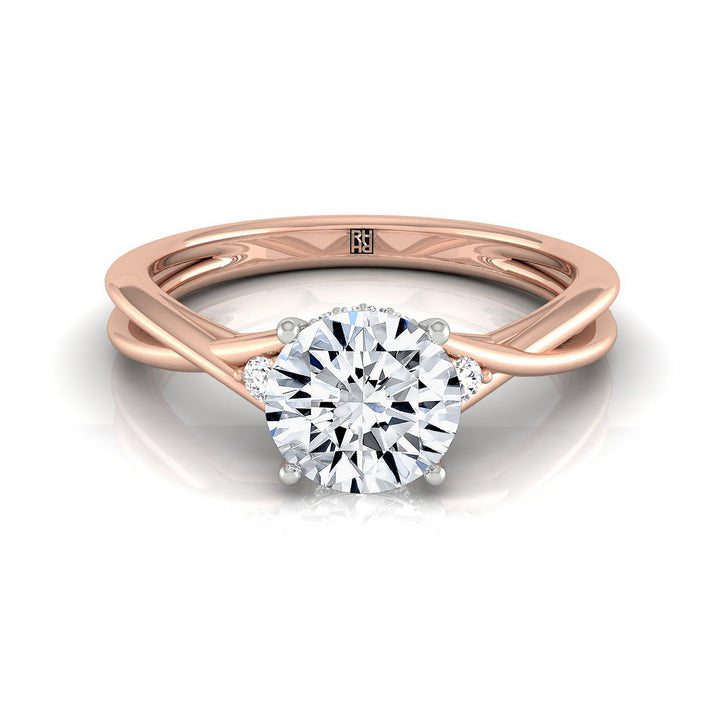 14kr Round Twisted Shank Single Hidden Halo Engagement Ring With 18 Prong Set Round Diamonds Sz 7.5
