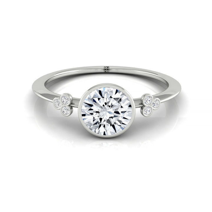 14kw Bezel Set Round Engagement Ring With 6 Clover Bezel Set Round Diamonds On Shank