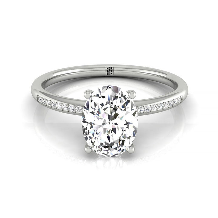 This 14k White Gold Beauty Showcases A Stunning Oval-shaped Diamond, Surrounded By A High Hidden Halo Adorned With 30 Prong-set Round Diamonds. Prepare To Be Captivated By Its Brilliance And Timeless Elegance.