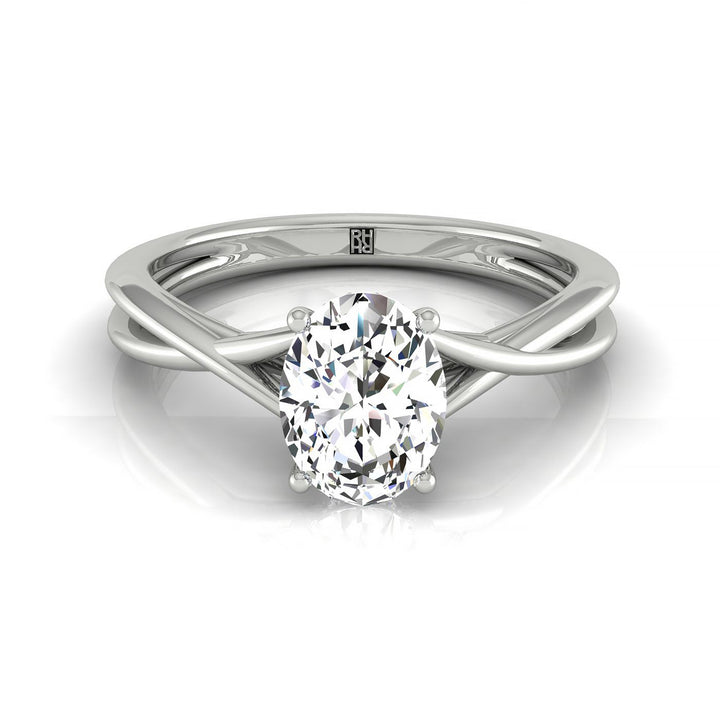 14kw Oval Twisted Shank Double Hidden Halo Solitaire Engagement Ring With 28 Prong Set Round Diamonds