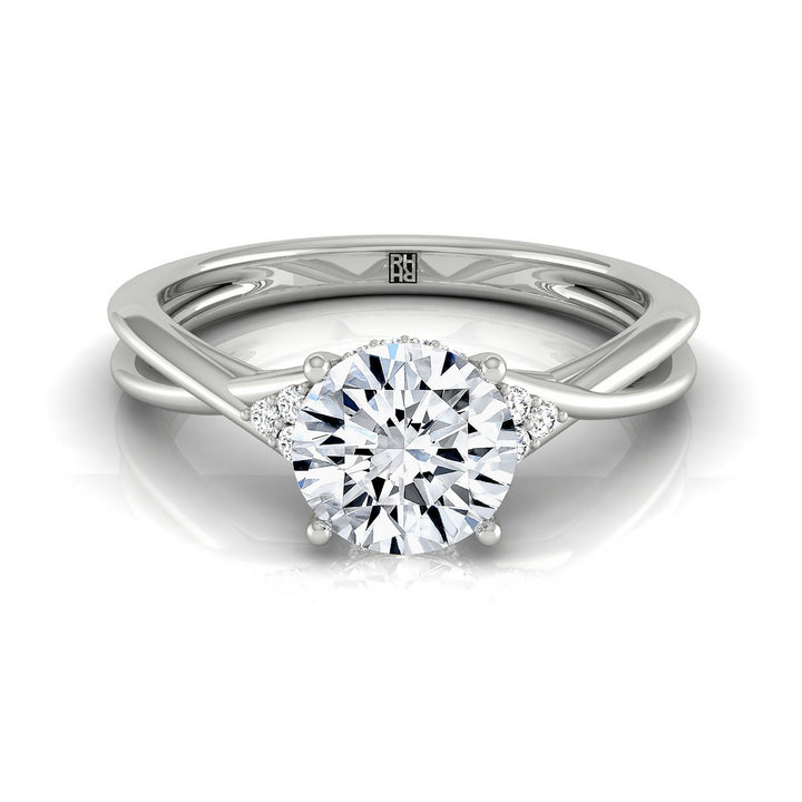 14kw Round Twisted Shank Double Hidden Halo Engagement Ring With 35 Prong Set Round Diamonds Sz 7.5