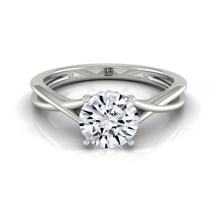 14kw Round Twisted Shank Hidden Halo Solitaire Engagement Ring With 16 Prong Set Round Diamonds