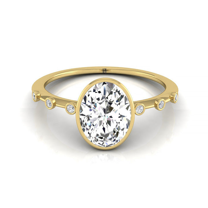 14ky Bezel Set Oval Engagement Ring With 6 Bezel Set Round Diamonds On Shank
