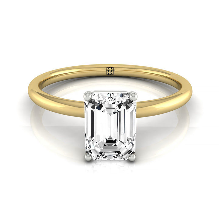 14ky Emerald Solitaire Engagement Ring With Hidden Halo With 8 Prong Set Round Diamonds