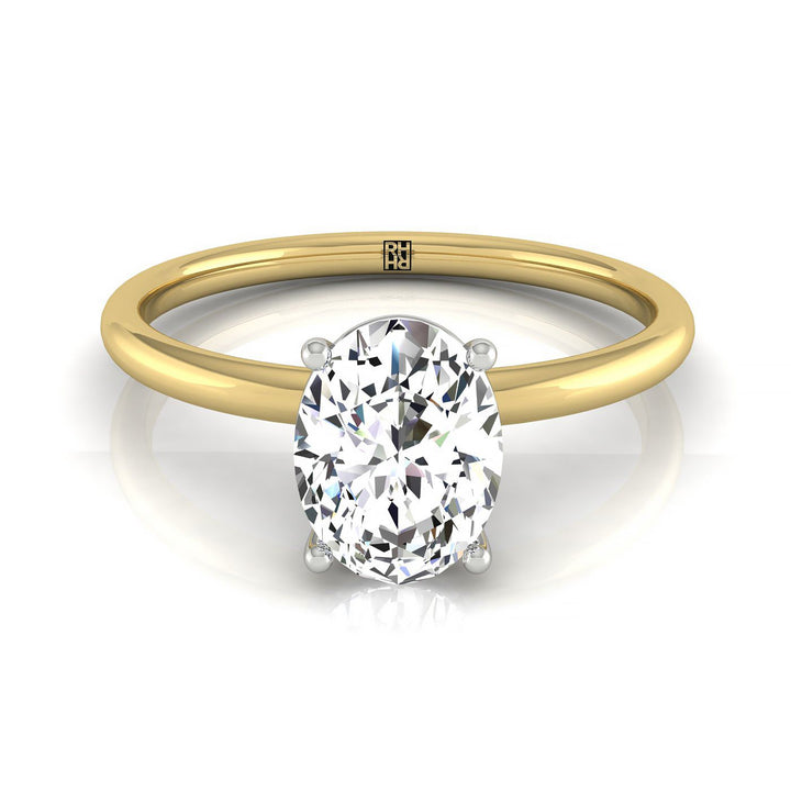 14ky Oval Solitaire Engagement Ring With Hidden Halo With 4 Prong Set Round Diamonds