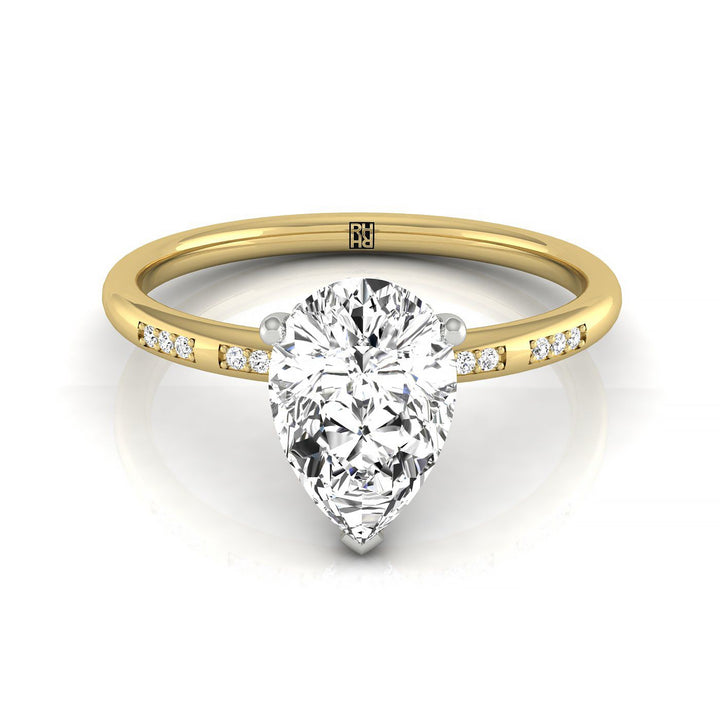 14ky Pear Engagement Ring With High Hidden Halo With 29 Prong Set Round Diamonds