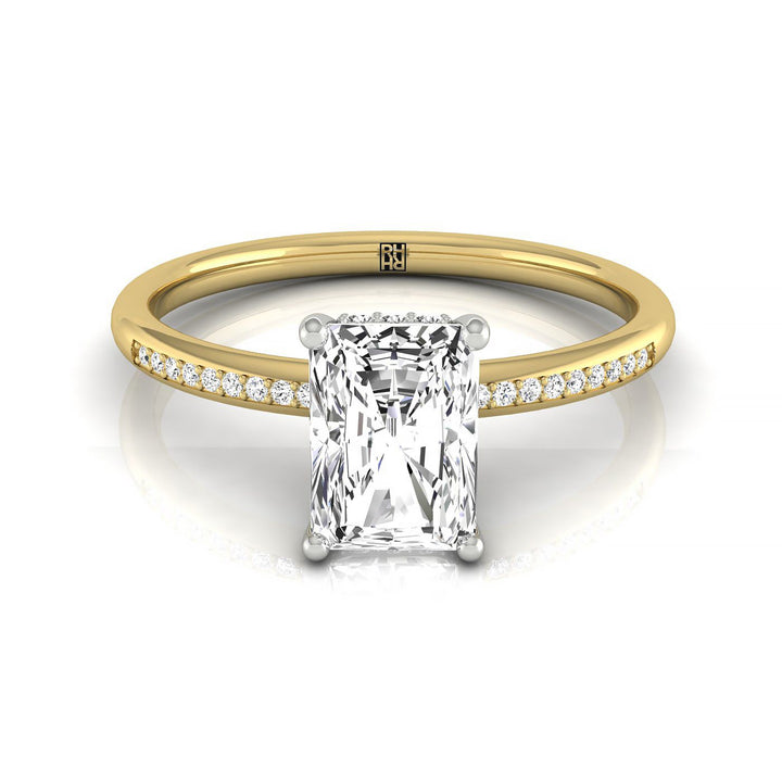 14ky Radiant Engagement Ring With High Hidden Halo With 42 Prong Set Round Diamonds