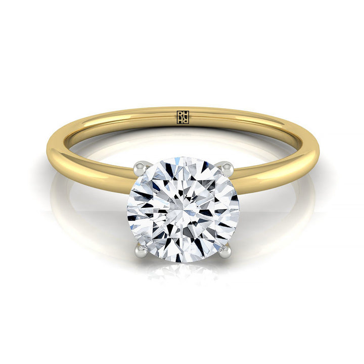 14ky Round Solitaire Engagement Ring With Hidden Halo With 8 Prong Set Round Diamonds