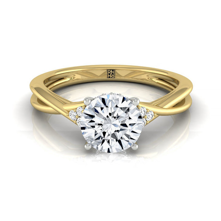 14ky Round Twisted Shank Double Hidden Halo Engagement Ring With 35 Prong Set Round Diamonds Sz 7.5