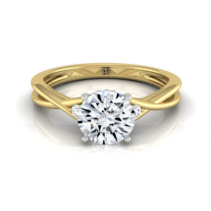 14ky Round Twisted Shank Single Hidden Halo Engagement Ring With 18 Prong Set Round Diamonds Sz 7.5