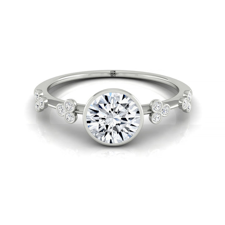 18kw Bezel Set Round Engagement Ring With 12 Clover Bezel Set Round Diamonds On Shank