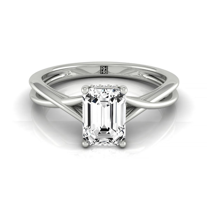 18kw Emerald Twisted Shank Hidden Halo Solitaire Engagement Ring With 16 Prong Set Round Diamonds Sz 7.5