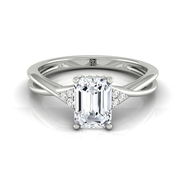 18kw Fancy Emerald Twisted Shank Double Hidden Halo Engagement Ring With 35 Prong Set Round Diamonds Sz 7.5