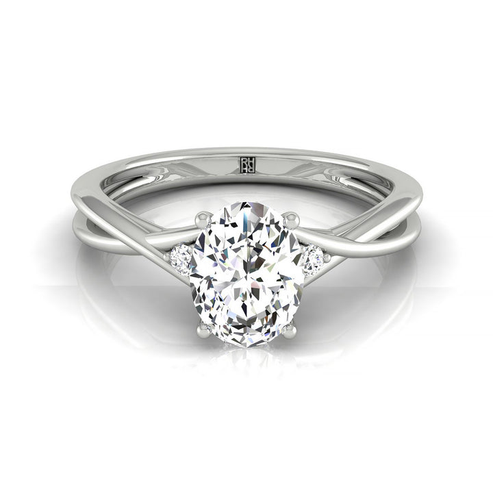 18kw Oval Twisted Shank Single Hidden Halo Engagement Ring With 18 Prong Set Round Diamonds Sz 7.5