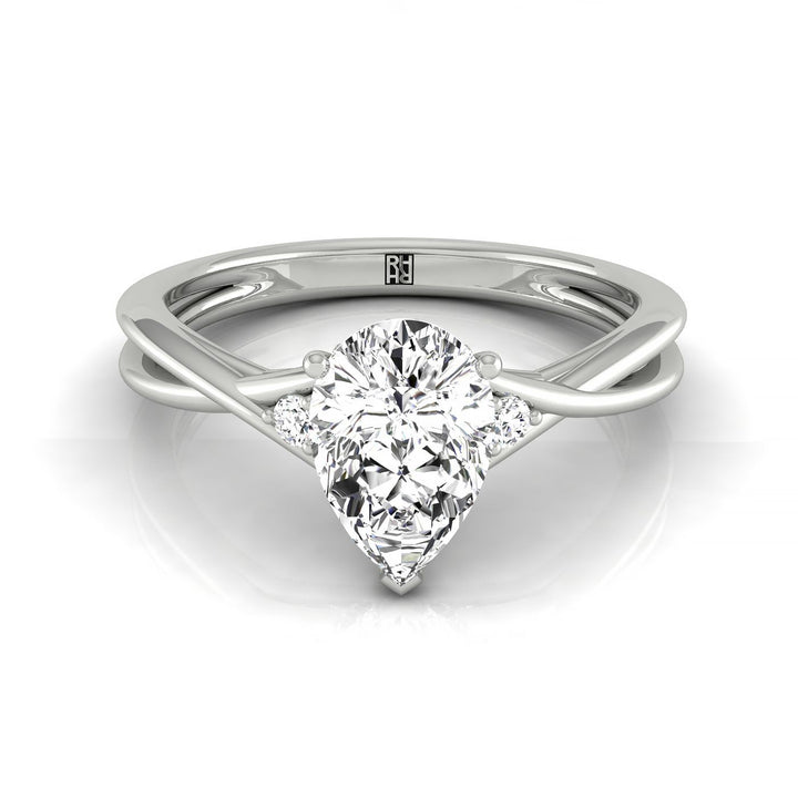 18kw Pear Twisted Shank Single Hidden Halo Engagement Ring With 19 Prong Set Round Diamonds Sz 7.5