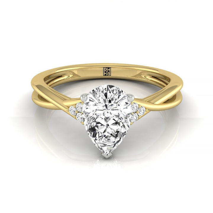 18ky Fancy Pear Twisted Shank Double Hidden Halo Engagement Ring With 38 Prong Set Round Diamonds Sz 7.5