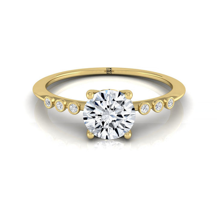 18ky Round Engagement Ring With 6 Bezel Set Round Diamonds On Shank