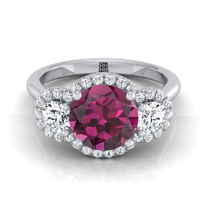 18K White Gold Round Brilliant Garnet French Pave Diamond Three Stone Engagement Ring -1/2ctw