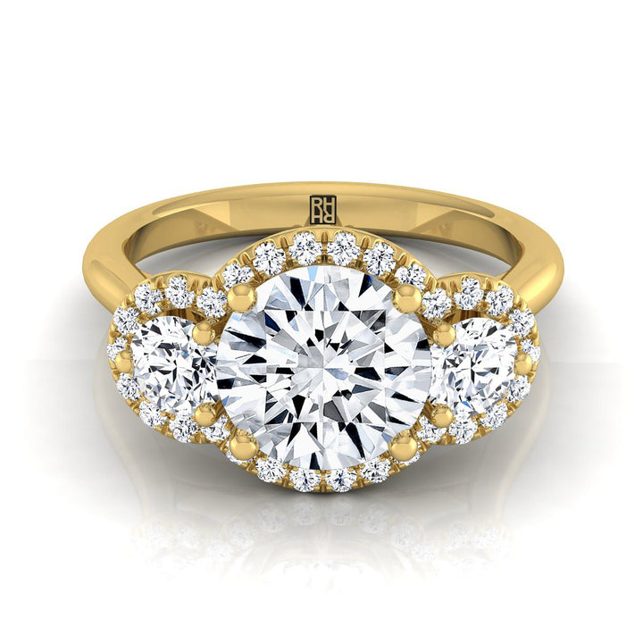 14K Yellow Gold Round Brilliant Diamond French Pave Diamond Three Stone Engagement Ring -1/2ctw