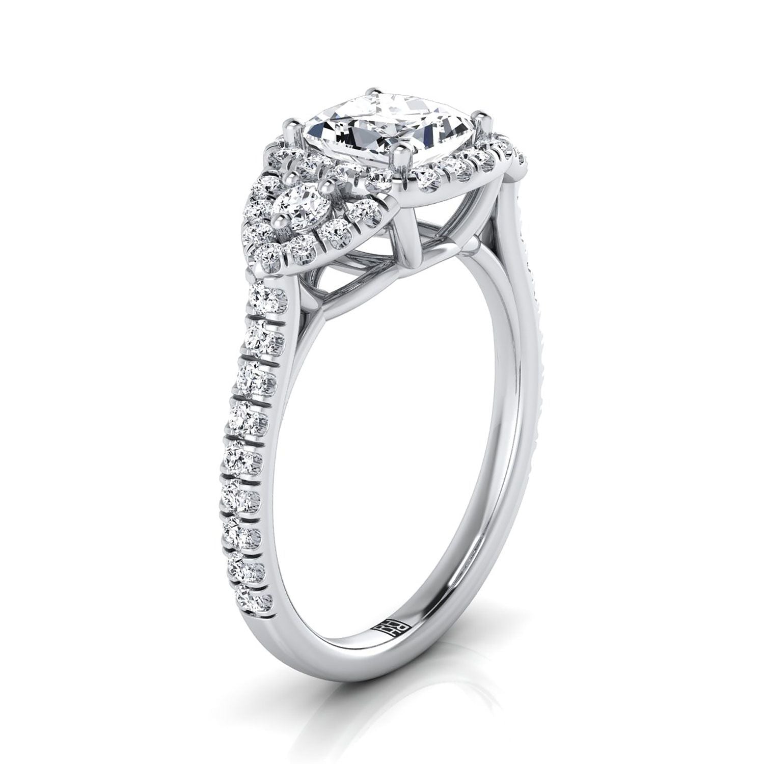 14K White Gold Princess Cut Diamond Delicate Three Stone Halo Pave Engagement Ring -5/8ctw
