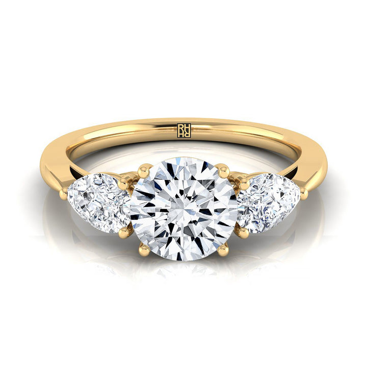 14K Yellow Gold Round Brilliant Diamond Perfectly Matched Pear Shaped Three Diamond Engagement Ring -7/8ctw