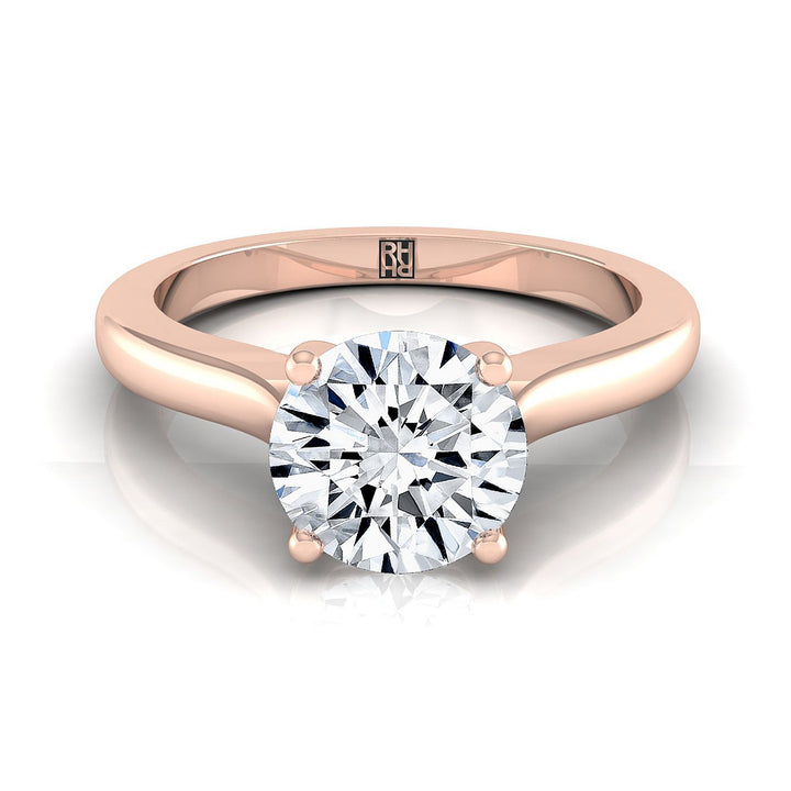 14K Rose Gold Round Brilliant Comfort Fit Cathedral Solitaire Diamond Engagement Ring