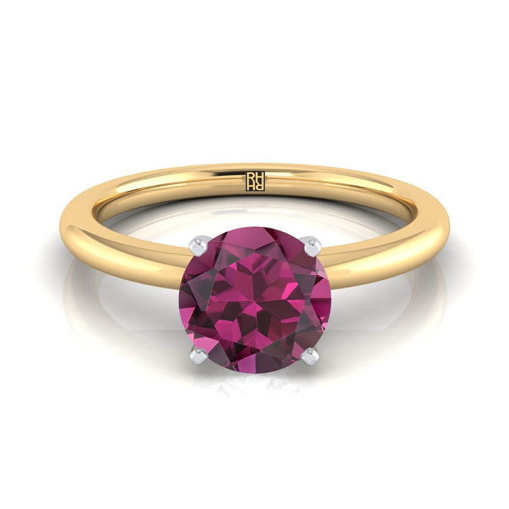 14K Yellow Gold Round Brilliant Garnet Round Comfort Fit Claw Prong Solitaire Engagement Ring