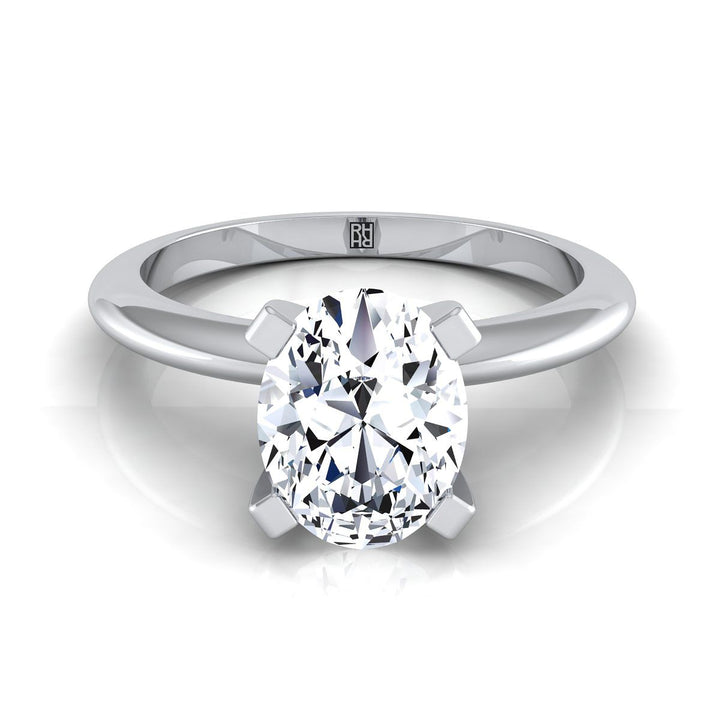 A Classic Statement Of Style, This Oval Solitaire Engagement Ring Showcases A Modern Knife Edge Shank And 4 Prong Center Setting In Platinum