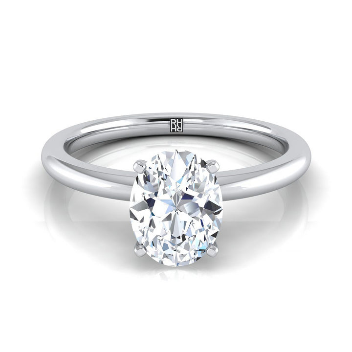A Classic Statement Of Style, This Oval Solitaire Engagement Ring Showcases A Rounded Shank And 4 Prong Center Setting In Platinum