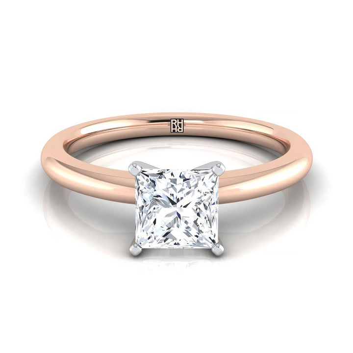 14K Rose Gold Princess Cut Round Comfort Fit Claw Prong Solitaire Engagement Ring