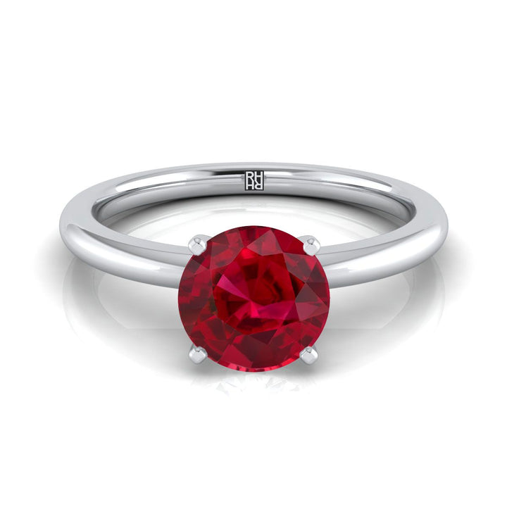 18K White Gold Round Brilliant Ruby Round Comfort Fit Claw Prong Solitaire Engagement Ring