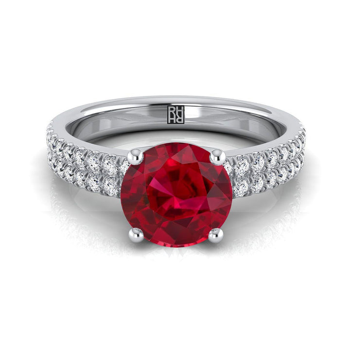 Platinum Round Brilliant Ruby Double Pave Diamond Row Engagement Ring -1/4ctw