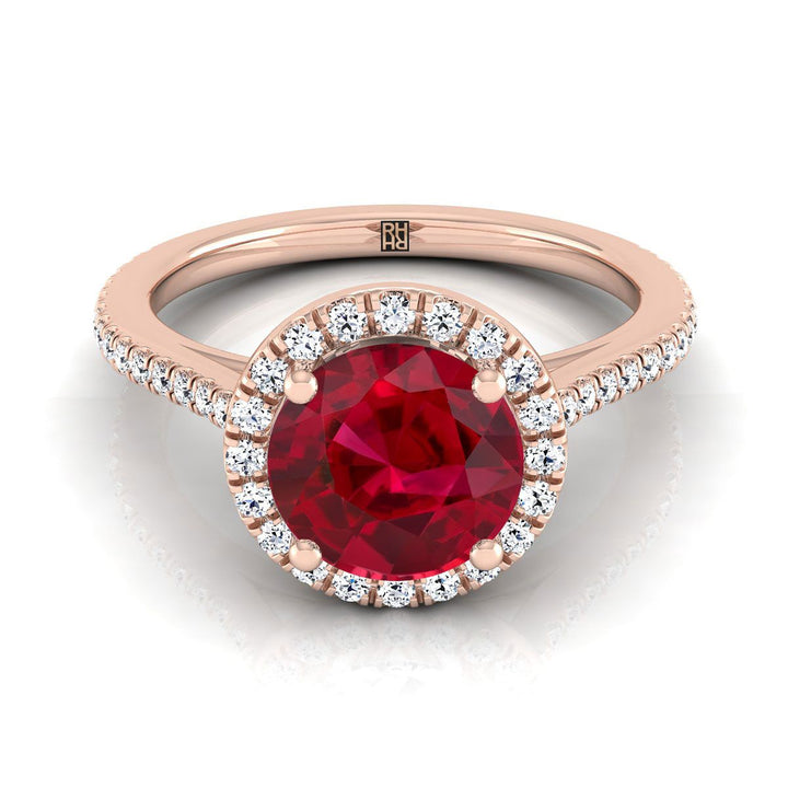 14K Rose Gold Round Brilliant Classic French Pave Halo and Linear Engagement Ring -1/4ctw