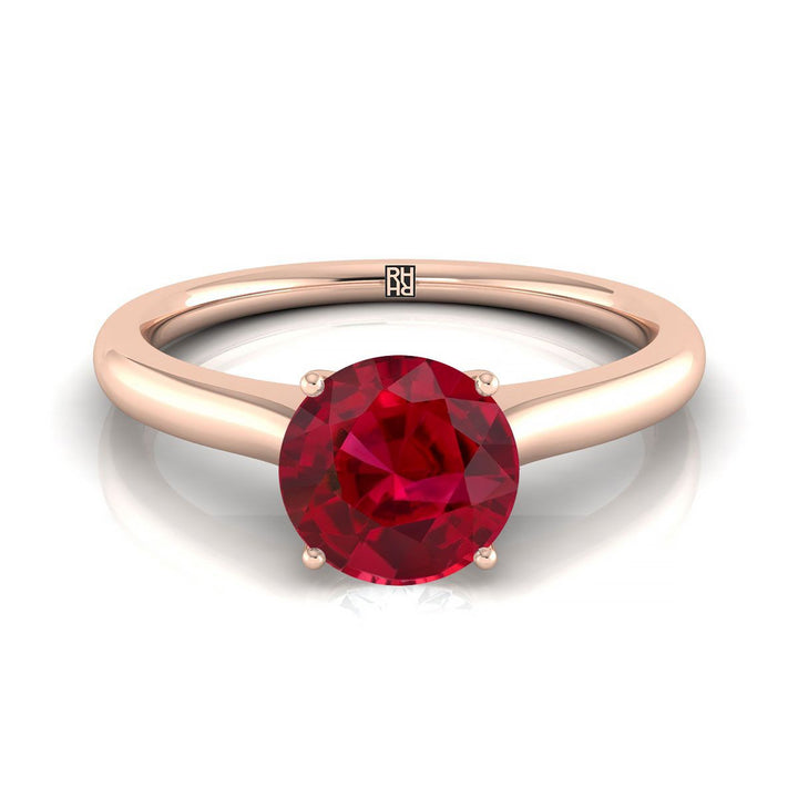 14k Rose Gold Engagement Ring With 5mm Round Ruby Center Stone And Bezel Design Shank
