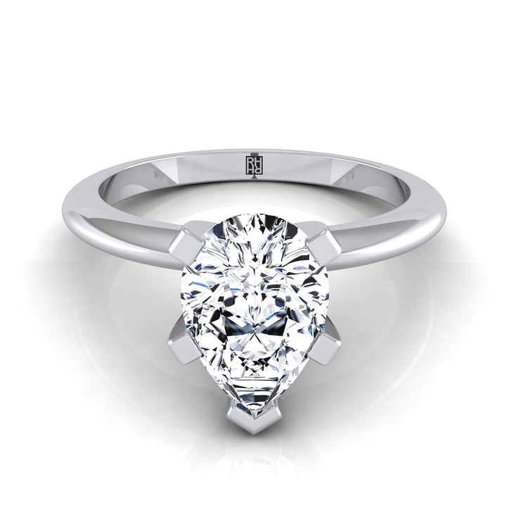Platinum Pear Shape Center Classic Low Base Solitaire Engagement Ring